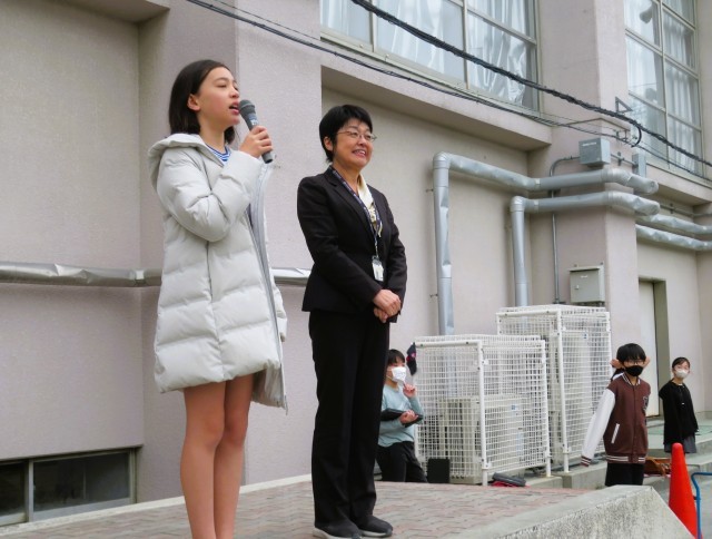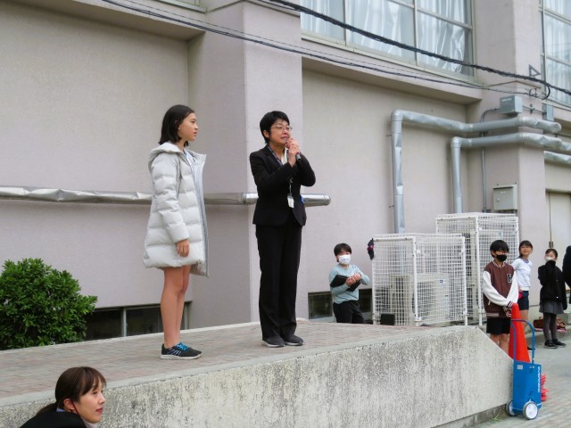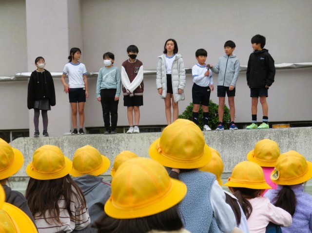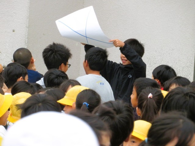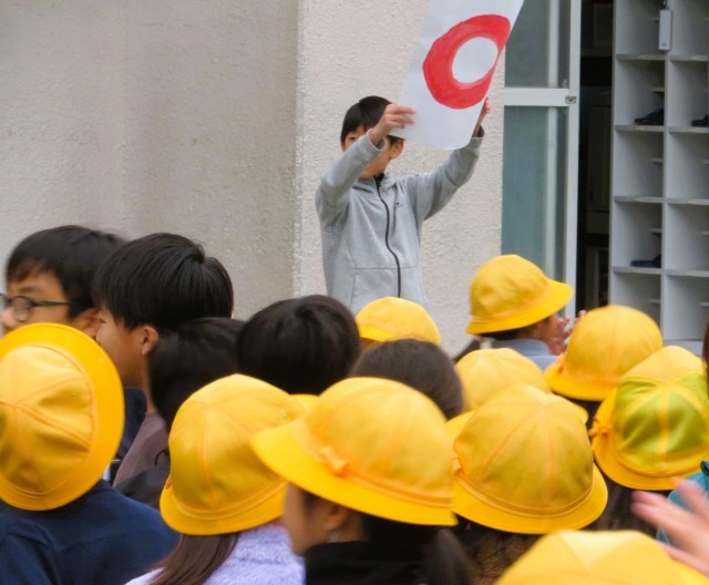 今日の児童集会は、集会委員の皆さんによる「新しい先生紹介集会」です。今年度、松小にいらした新たな先生に関することについて〇×クイズで出題しました。まずはルールの説明、そしてH副校長先生の好きな「色」についての出題です。
