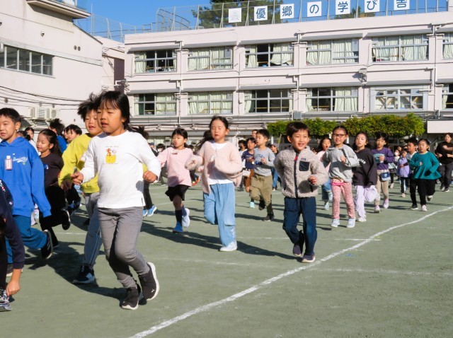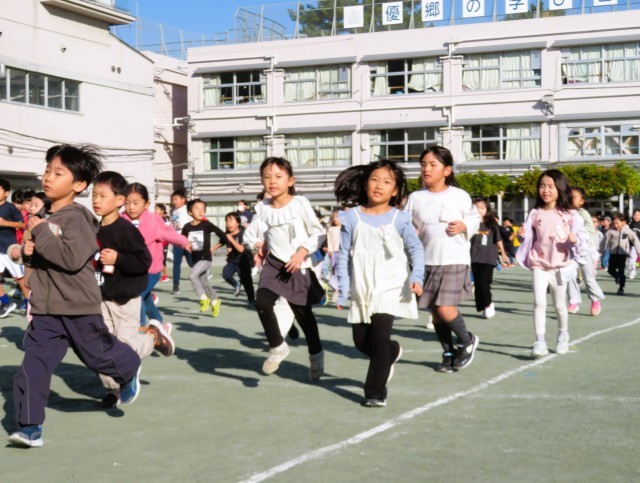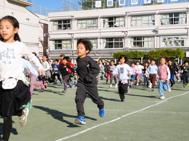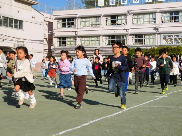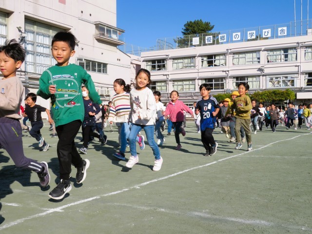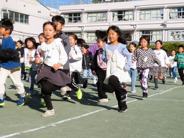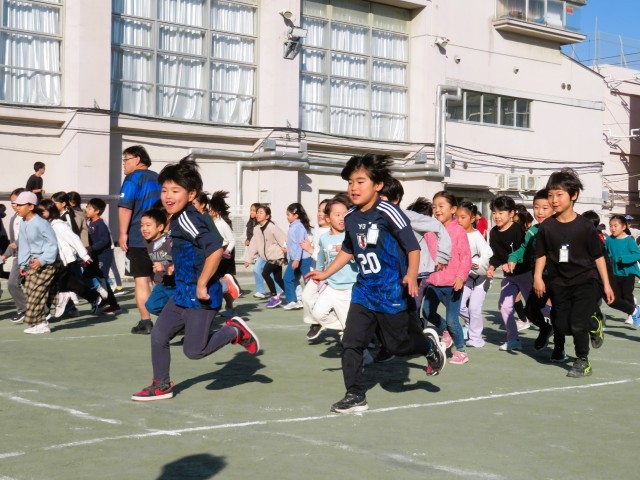 松丘小学校では、始業前の「朝遊び」に加えて「朝ランニング」に取り組んでいます。今年度の重点目標の一つである「健康・体力づくり」への取り組みです。