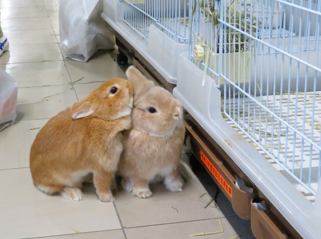 最後に、ブラッシングもしてもらって、ウサギのモカとラテは気持ちよさそうです。飼育委員の皆さん、いつもありがとう!