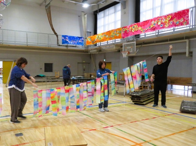 子どもたちの作品を、少しでもよくお見せすることができるようにと、作品の配置や装飾の一つ一つに工夫をしています。