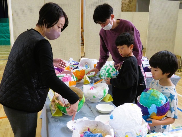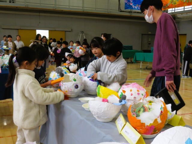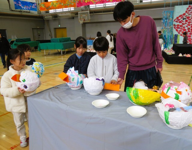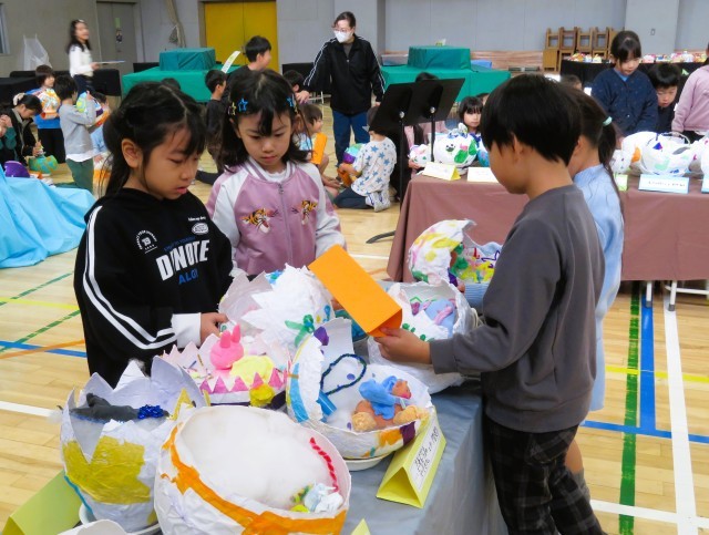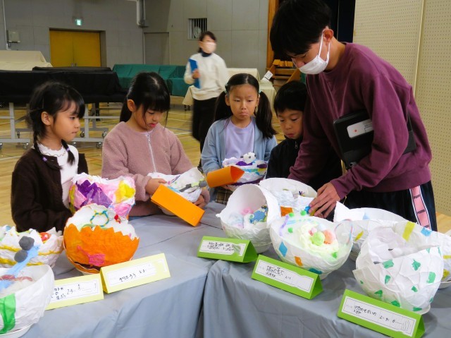立体作品の向きなどが、子どもの思いと一致しているかどうか。一人ひとりと確認、そして微調整をしています!