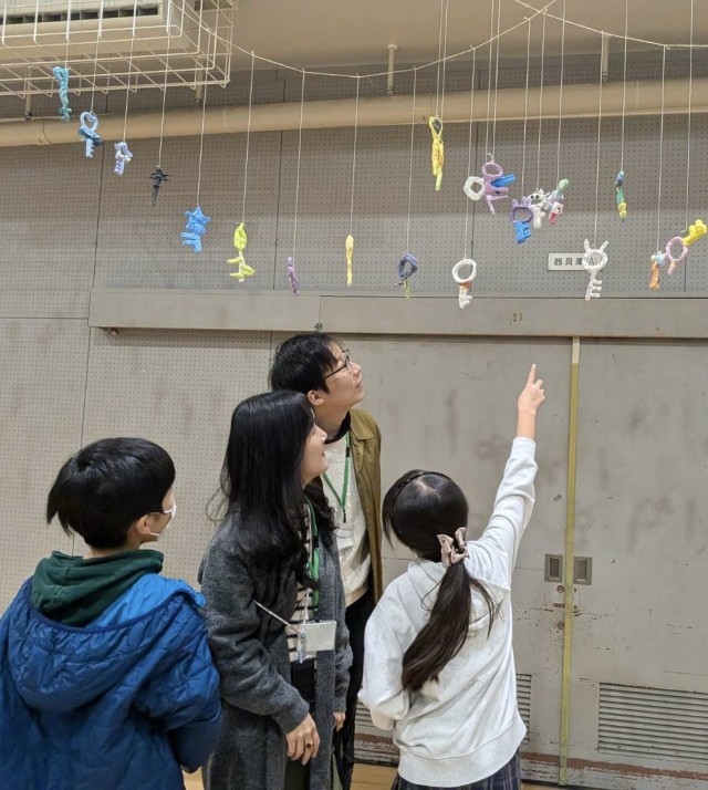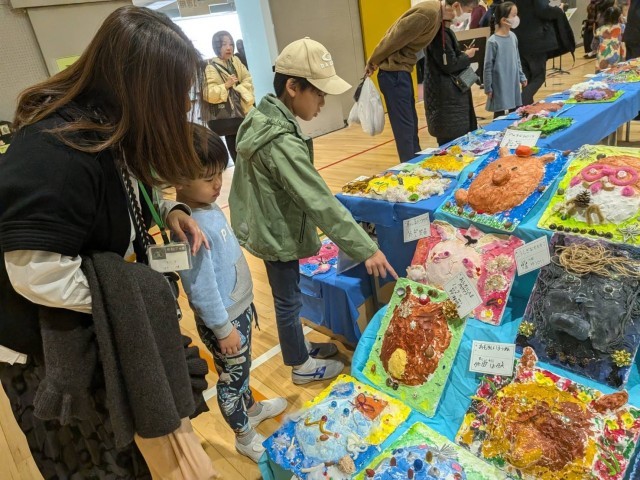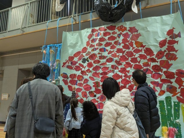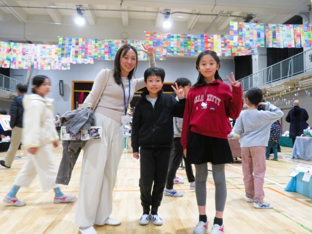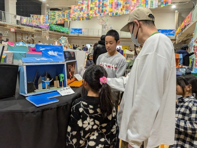 参観をされている方々から、子どもたちの発想や表現力の素晴らしさ、先生方の展示の工夫、根気強い指導などにたくさんの励ましの言葉をいただきました。松小から転出された、小林先生、小森先生、齋藤先生が来てくれて、子どもも私たちも嬉しかったです!