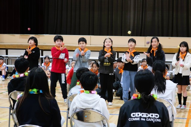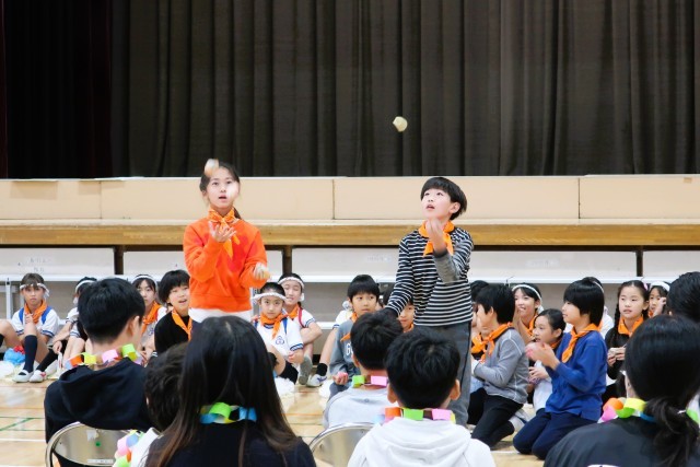 お手玉を披露している様子です。上手なお手玉に大きな拍手が沸き起こりました!