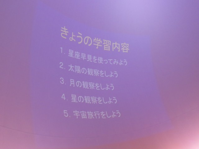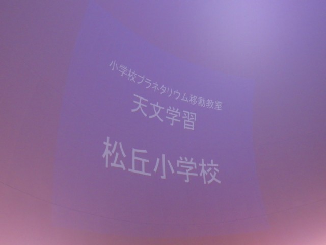 周りの景色が松丘小学校の校庭になり驚かされました。小学校の校庭から見た太陽や月の動き、そして星座早見盤を使って星座の見つけ方などを教えていただきました。最後は、地球からの「宇宙旅行」です。太陽系から銀河へ。子どもたちからは感激の声があがりました!