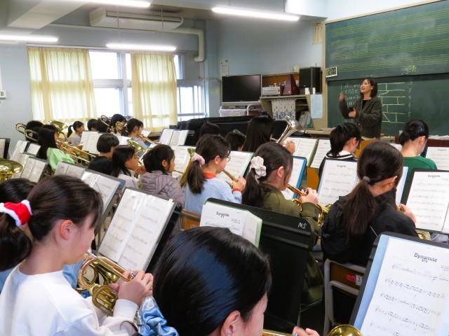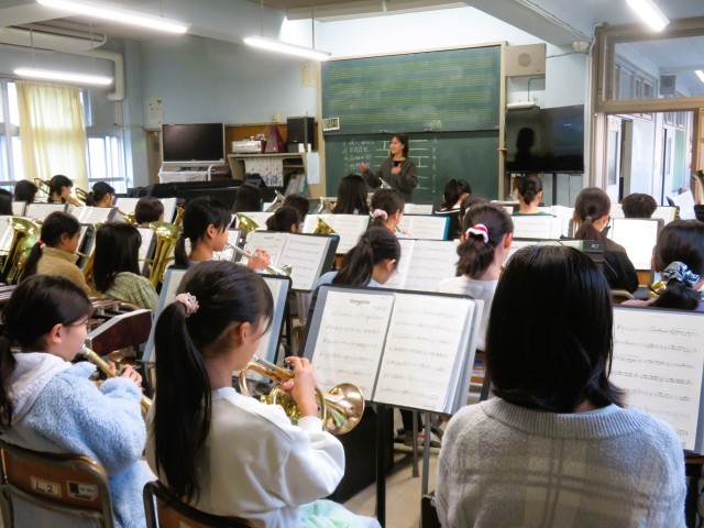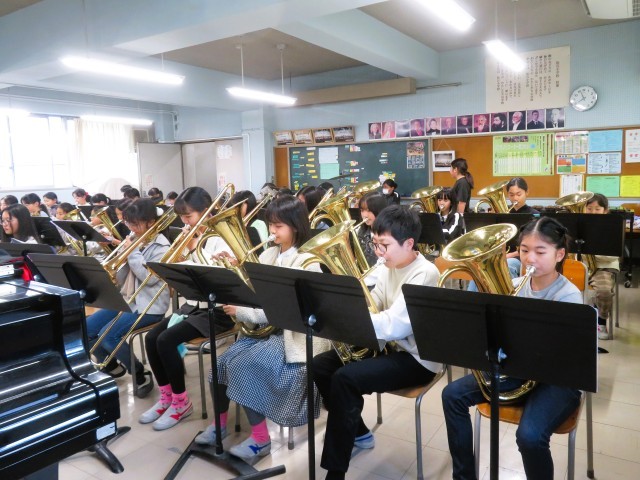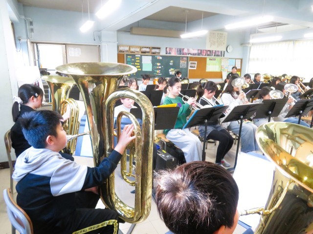金管バンドの皆さんは、2月21日開催予定の「管楽器演奏会」に向けて、朝練習をがんばっています。音楽室に入ると、いつも気持ちのいいあいさつがあり清々しい気持ちになります。