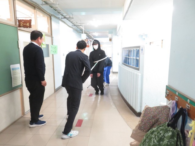 今日の避難訓練は、校内に不審者が侵入したという想定で行いました。子どもたちは一人一人が真剣です。教職員は、不審者に対応するとともに、更なる侵入を防ぐために素早く教室の扉を施錠し、バリケードを作りました。私たちは、子どもたちの安全を第一に考え、よりよい方法で対応をします。