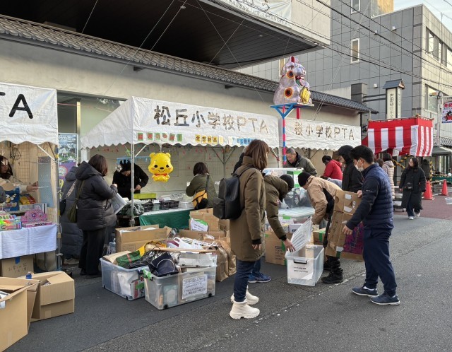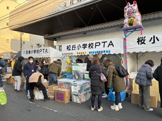 今日から1月のボロ市がはじまります。早朝からPTAの皆様が集まり、出店の準備をしてくださいました。本当にありがとうございます。PTA会員の皆様からいただいた、すべて未使用の家庭用品、キッチン用品・食器、文具・雑貨、ファッション雑貨、ハンドメイド品などの提供品を販売しています。この収益は、PTA活動費として、子どもたちのために還元されます。親子で楽しく参加していただきたいと思っています。