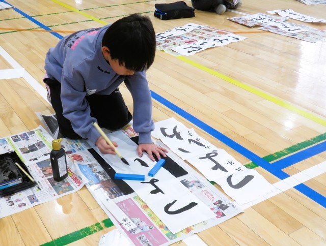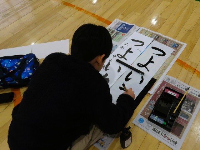 筆づかいの難しさに苦労しながら、「つよい力」を元気いっぱいに書き上げました。