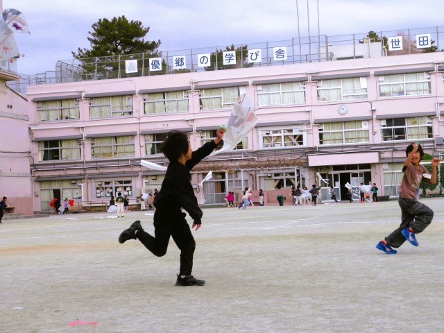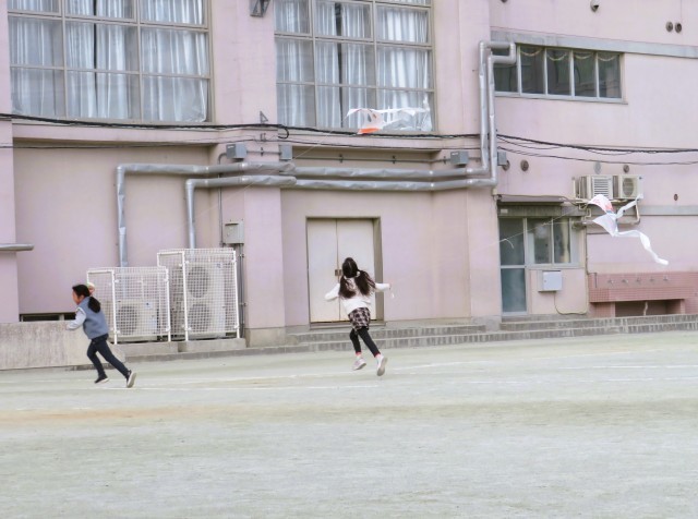 凧揚げは,広い場所がないとなかなかできませんが、今日は校庭で思いっきり楽しむことができました。