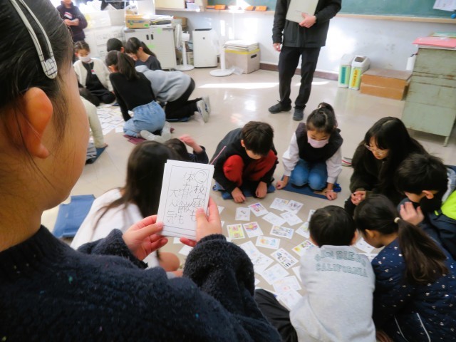 2回目以降は様々な学年の子どもが読み、楽しんでいました。和やかに、楽しくカルタ遊びが進んでいました。