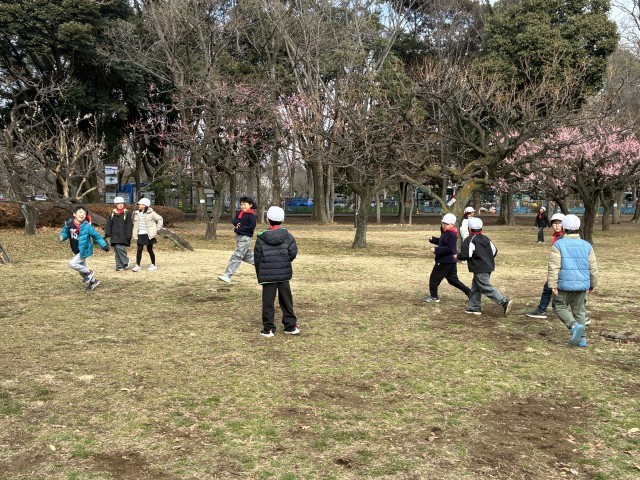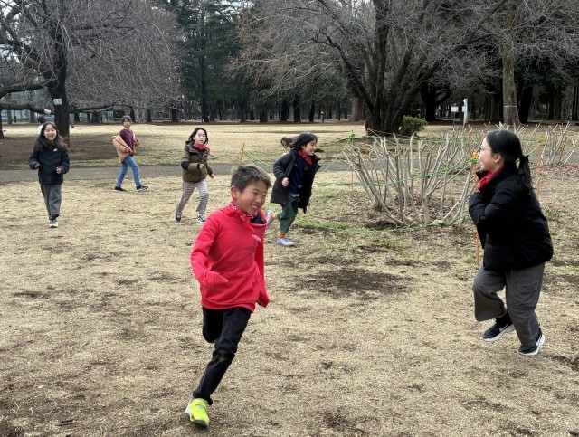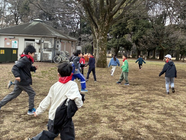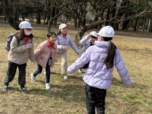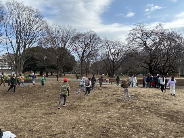 お弁当を食べた後は、大好きな外遊びです。「だるまさんが転んだ」「鬼ごっこ」などで遊んできました!