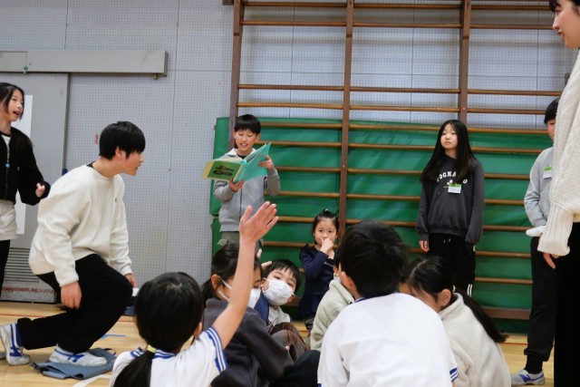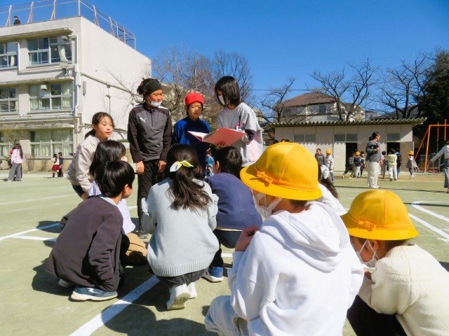 5年生が新たなリーダーとなった『たてわり集会』を昼休みに行いました。松丘小学校の特色ある活動の一つとして、異学年の子どもたちと交流し、思いやりの気持ちをさらに向上させるための活動です。まずは、4年生がやさしく1年生のお迎えをして、それぞれの活動場所に案内しています。班ごとに出欠の確認とゲームの説明がありました。