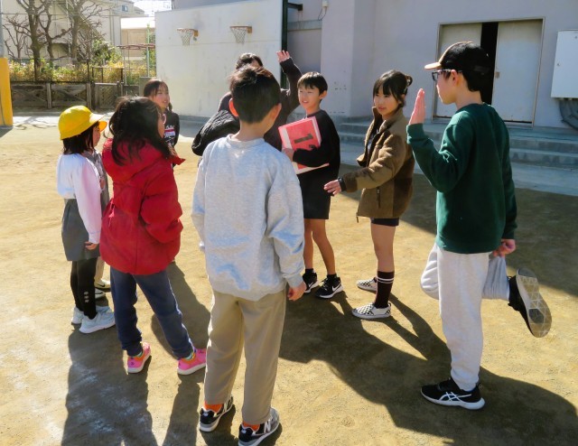 振り返りをしている様子です。今回も4,5,6年生のやさしさをたくさん見ることができて、嬉しく思いました!