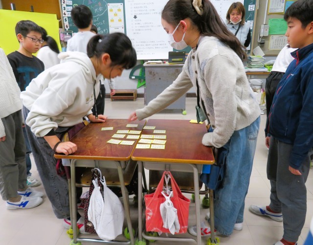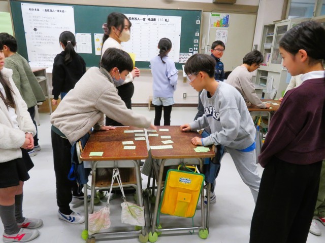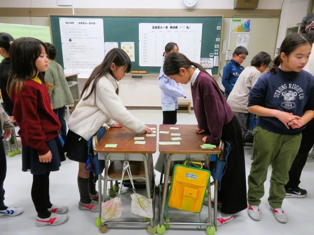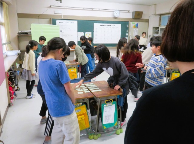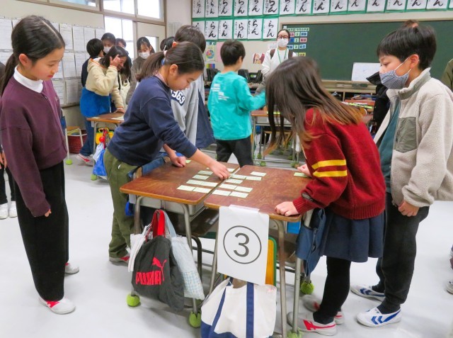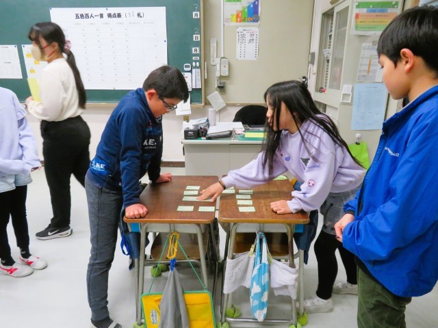 写真は、4年生の百人一首の様子です。