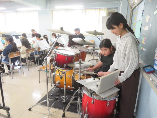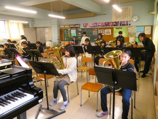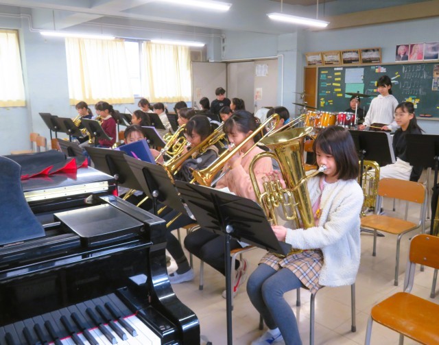 金管バンドの皆さんは、5年生がリーダーとなる新たな体制で、新たな目標である「入学式」に向けて練習に取り組んでいます。音楽室に入ると、新部長を中心に「おはようございます!」の爽やかなあいさつがあり温かい気持ちになります。