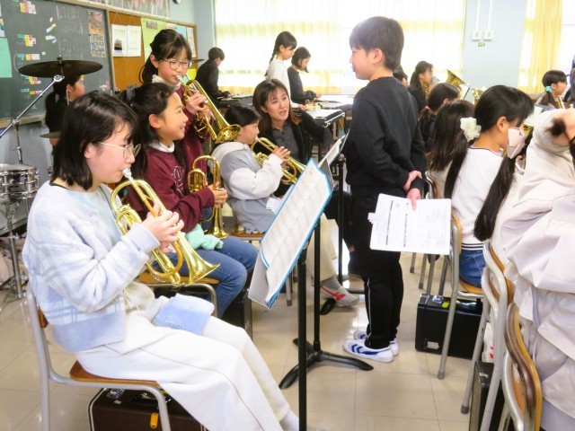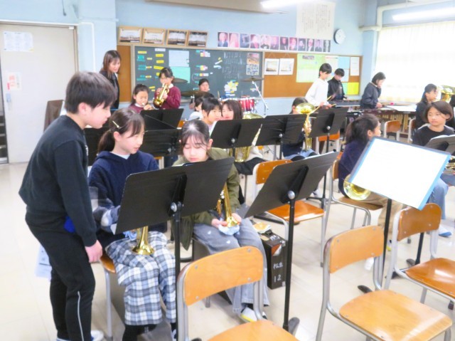 今日は「崖の上のポニョ」の個人練習が中心ですが、6年生が駆け付けアドバイスを送っている姿があり嬉しく思いました!