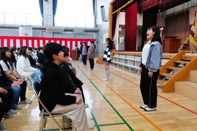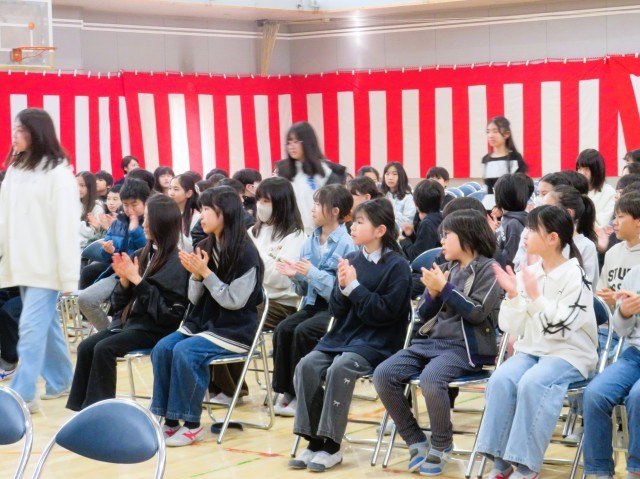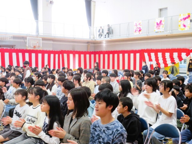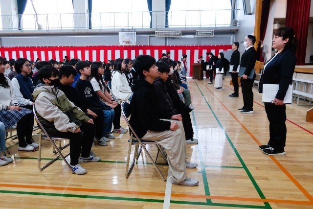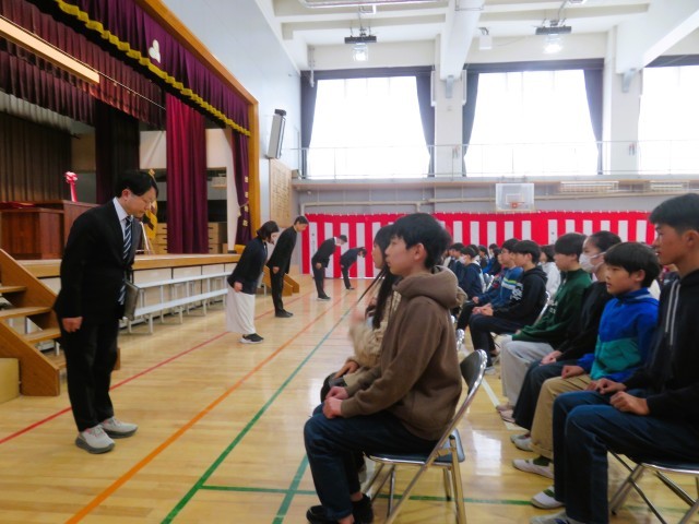 今日は卒業式の予行演習です。入場、卒業証書授与、退場、どれもが真剣で心がこもっています。