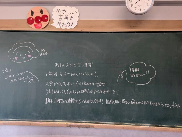 写真は、5年生の黒板です。