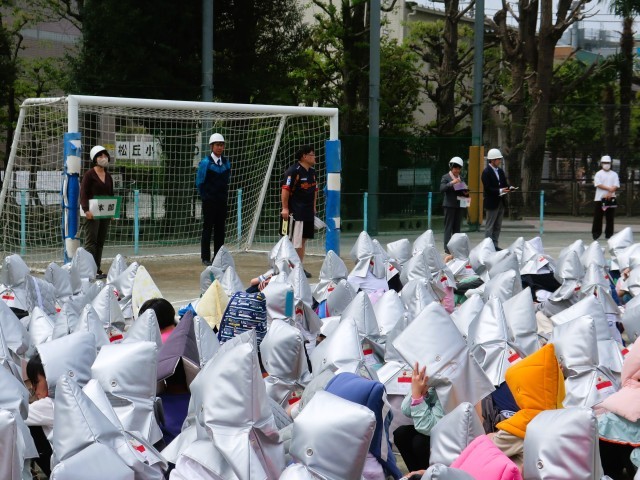 整列しての移動、避難後の話を聞く態度、真剣さが伝わってきました。