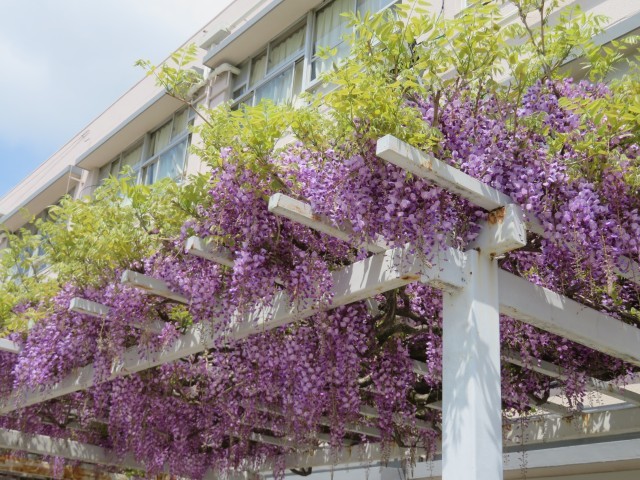 藤棚の下を通ると、いい香りが漂ってきます。心が和みます。