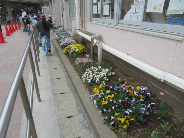 正門では、2年生が育てているパンジーの花道が出迎えてくれます。