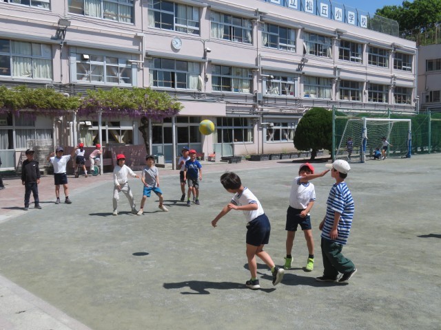 休み時間の校庭は、あちらこちらから歓声と笑い声が聞こえてきます。