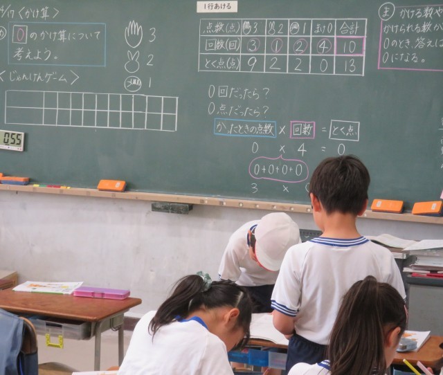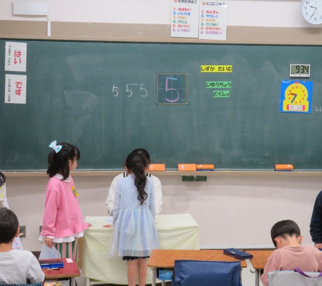 1年生は数字の6を、3年生はかけ算を、6年生は点対称を学習していました。