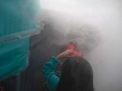 このあと、1年3年5年生は煙体験をしました。火災のとき、煙で命を落とすことが多いようです。煙の怖さを実感し、煙にまきこまれる事態になったらどのように避難するのかを消防署の方にお話しいただき体験しました。子どもたちは煙の恐ろしさを改めて感じていたようです。