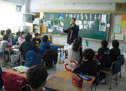 5年生は、卒業生の保護者の方をゲストティーチャーにお招きし、地球の温暖化をテーマに学習しました。今のままの生活を続けると北極の氷はいつごろ溶けてしまうかなど具体的な課題と用意くださった豊富な資料をもとにして地球の温暖化について考えました。