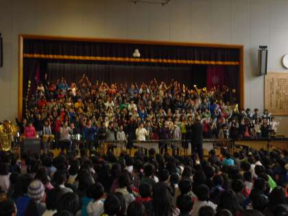 今日は6年生を送る会です。1年生から5年生は6年生に感謝の気持ちを伝えたいという思いを精いっぱい表現しました。短い時間で、メッセージと歌やリコーダーの演奏を心をこめてできました。
