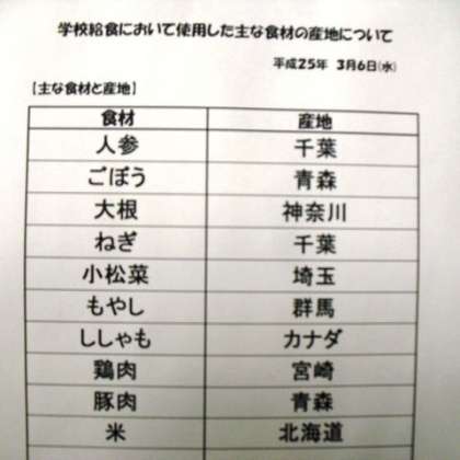 3月6日(水)本日の給食産地