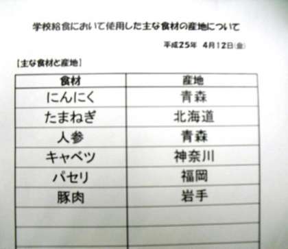 4月12日(金)本日の給食産地