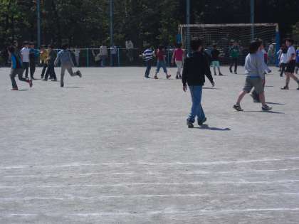 土曜日の中休み。子どもたちは校庭に出て元気よく遊んでいます。一輪車、縄跳び、鬼ごっこ、ボール遊びなど様々なことをしています。