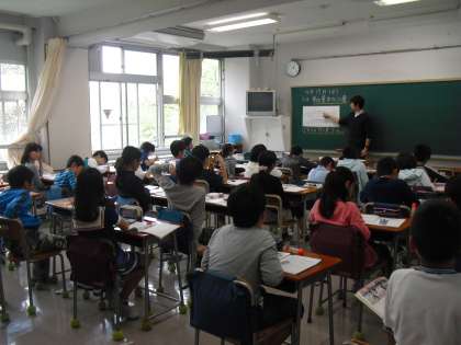 教室では、5年生が算数の勉強をしていました。「4日間に○周走った子どもと5日間に△周走った子ども。さて、どちらが多く走ったのでしょう。」を様々に考えています。子どもたちの発想はなかなか柔軟です。