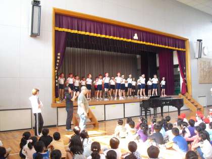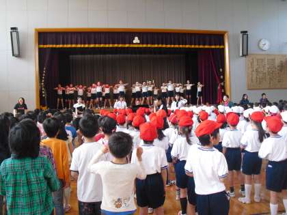 音楽朝会で、「ゴーゴーゴー」の練習をしました。運動会でとても盛り上がる歌です。今日は、体育館に赤・白わかれて、元気いっぱいの歌声を響かせました。運動会まで2週間と少しです。