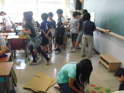 子どもたちは、朝、少し早めに登校したり、休み時間を使ったりして作業しています。時間を見つけて松丘まつりの準備に取り掛かっているようです。ダンボールをかかえて登校する姿を見ると、このダンボールはどのような形に変身するのか楽しみです。