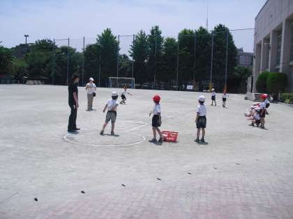 今週はスポーツテストも実施しています。1年生ははじめての体験でなかなか苦戦しています。ボランティアの大学生の力を借りながら行っています。