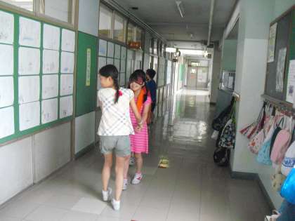 4年生は、アイマスク体験をしていました。声をかけながらペアの友達を案内しています。言葉で伝える難しさも味わっていますし、光を失った状態で歩くことの怖さも味わいます。体験を通して、少しでも、声のかけ方や、接し方を考えることができればと思います。