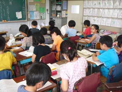 子どもたちの授業中の様子も落ち着いています。暑い中ですが、がんばって勉強に取り組む子どもたちです。