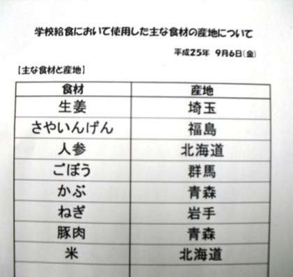 9月6日(金)本日の給食産地