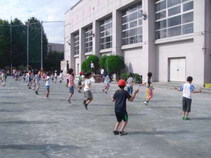 縄跳びは、地道に練習しているととても上達します。少し涼しくなってきました。スポーツの秋です。早起きして食事前に5分間跳ぶというようなこともできるとよいですね。このあと始まるマラソンへの取り組みにも成果をあげると思います。
