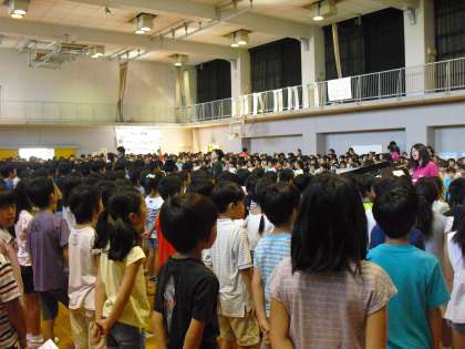 2学期最初の音楽朝会。大きな古時計を歌いました。私にとってはなつかしい歌です。この歌を聴いていると色々なことを思い出すのは私だけでしょうか。
