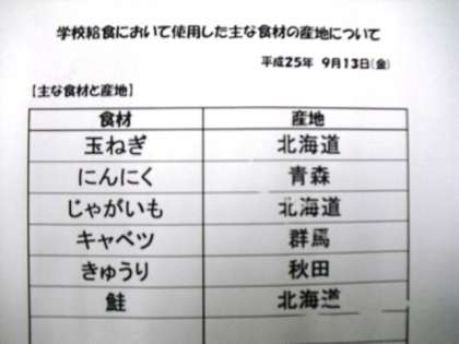 9月13日(金)本日の給食産地