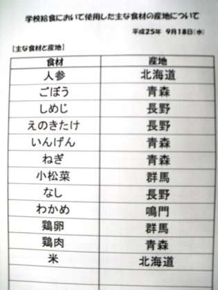 9月18日(水)本日の給食産地