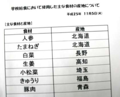 11月5日(火)本日の給食産地