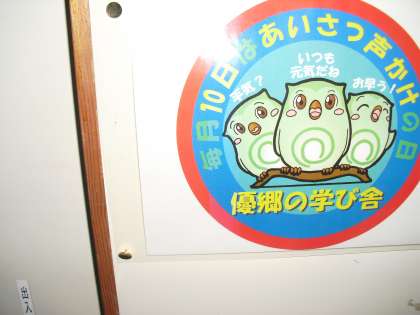 また、毎月10日は「あいさつ・声かけの日」として、優郷の学び舎では、キャラクターを決めて、子供たちへの声かけをお願いしています。特に、日暮れの早くなった季節になっていますので、5時過ぎても外で遊ぶ子供を見かけましたら、家に戻ることように声をかけていただけますとありがたいです。