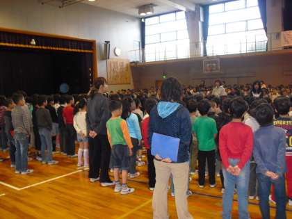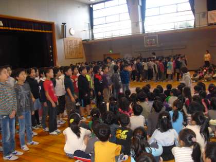 音楽朝会でした。体育館に、子供たちのきれいな声が響きます。