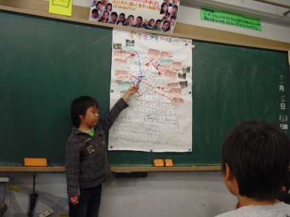3年生は、安全マップつくりをしました。学校の外に出て、自分の目で町の様子を見て危険なところ、安全なところを発見し自分たちが生活する上でどのようなことに気をつけていくかを考えます。グループごとに地域が分かれていますので、全員の発表を共有していきます。自分たちの町を新たな目で見て、今後に生かす大事な学習です。