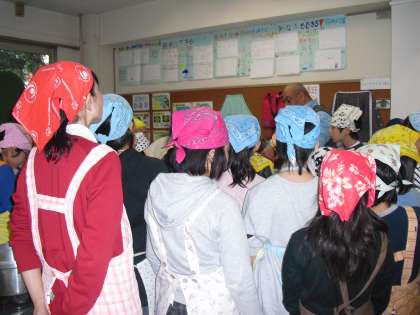 家庭科室から、よい香りがしています。5年生の楽しそうな声・・・・・インドの方をゲストティーチャーのお招きしたカレーづくりの授業が行われています。楽しい先生の話に引き込まれている子供たち。おいしいカレーのできあがりが楽しみですね。