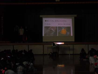 パソコン委員会と飼育委員会の発表がありました。それぞれ発表形式を工夫し、自分たちの委員会の仕事を伝えていました。途中、クイズを入れながら、全校児童に委員会の活動を紹介しました。